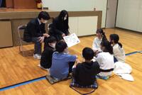 どんぐりゴマを作っている子供たちは、「こうすると、よく回るよ」など、