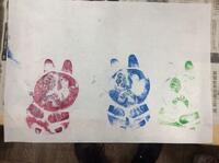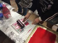 段ボールや紐、ネットなどで「版(はん)」を作り、インクを付けて「刷り出し」を行いました。