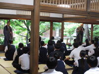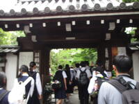 5月25日(日) 朝食後、ホテルを出発し、お隣にある妙心寺退蔵院で座禅体験です。始めての座禅体験で少し緊張気味でしたが、時々警策の音が響く中こころを無にする時間を過ごして、終了後はとても清々しい気持ちになりましたご住職の「自分を大切に」というお話しをしっかりと胸に刻んでいた生徒たちでした