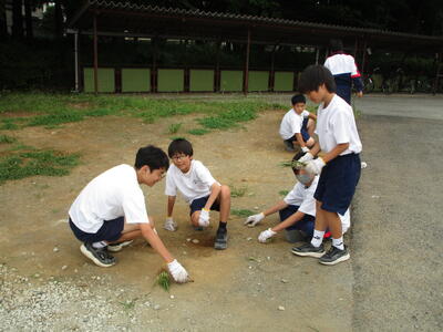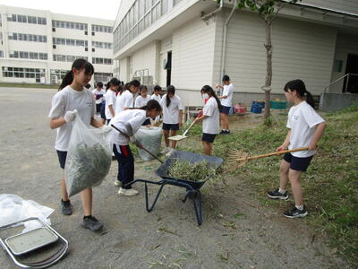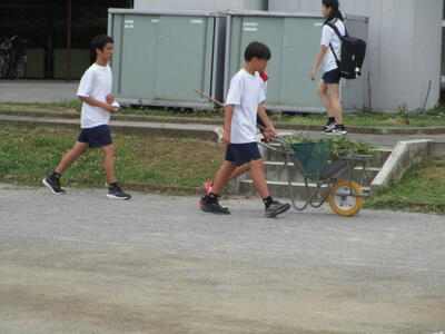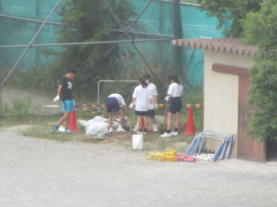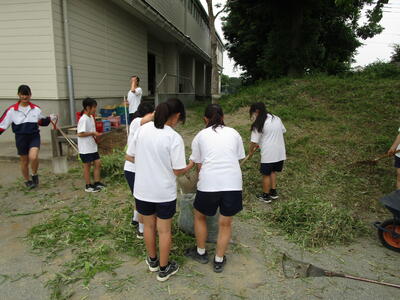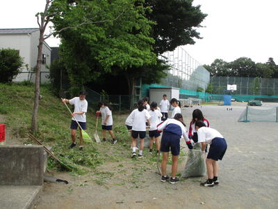 放課後は女子バスケットボール部、女子ソフトテニス部、男子ソフトテニス部のメンバーが、グラウンドの草刈りをしてくれましたありがとう