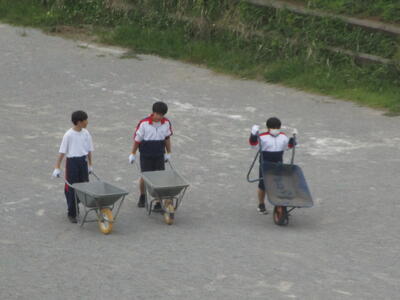 今日は、午前はグラウンドで最後の練習、午後は会場準備。いよいよ明日は体育祭です