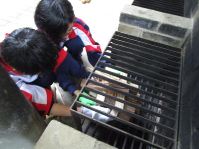10/15(水) 外で理科の実験をする3年生たち 気圧の実験でした