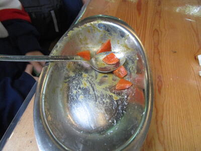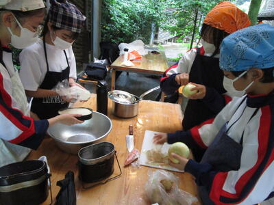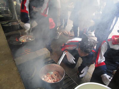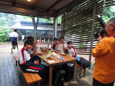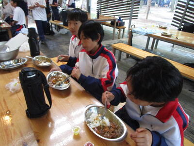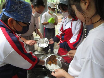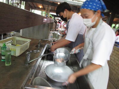 かまど担当、カレー担当、ご飯担当でそれぞれチームワークを発揮して、美味しいカレーライスを完成させました片付けもみんな率先して、きれいになるまで行っていて、とても感心しました