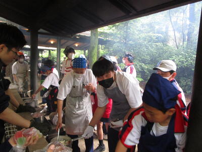 あいにくの雨の中でしたが、屋根のあるキャンプ場で、予定どおりカレーライス作りをしました