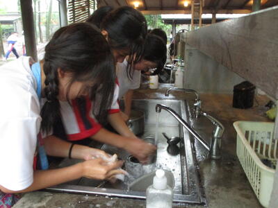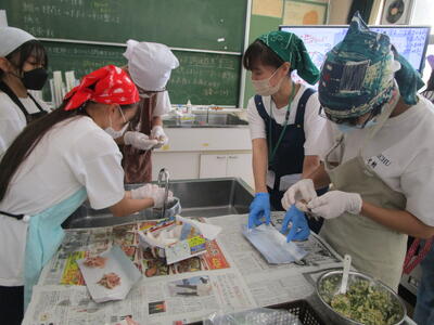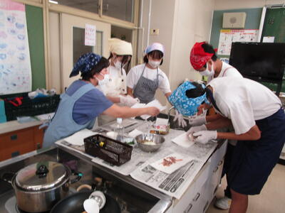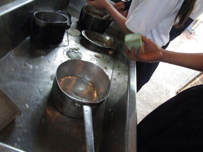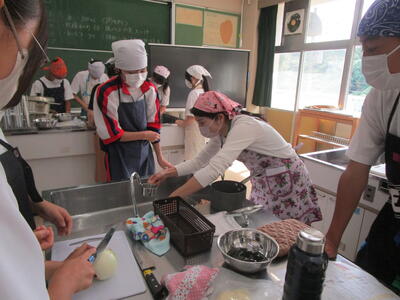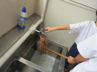 そして、調理実習が始まる前にと、保護者・地域の方々が調理室の整備をしてくださいました