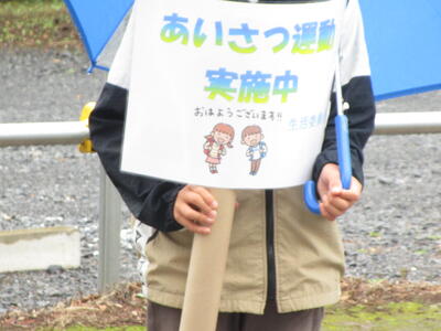 これは毎月第1火曜日の朝に行っています。小学校中学校の各門の前で、元気に「おはよう」の声が響きました