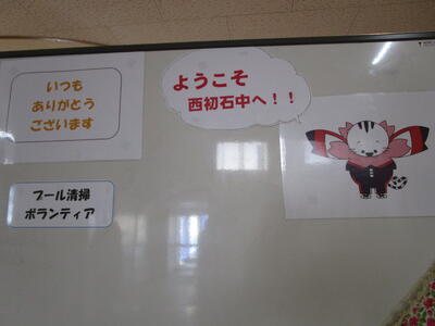 これは、西初石地区の小・中・高連携活動で、明るい街づくりのために命名したもので、横断幕や看板を設置しています。その看板が老朽化してきたので、西中40周年を機に、西初石中総合文化部と流山おおたかの森高校美術部が、合同で新しい看板を作製しました
