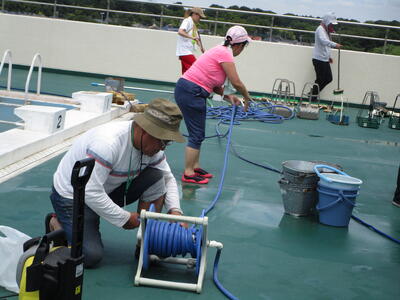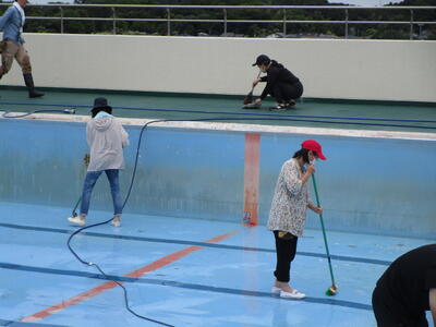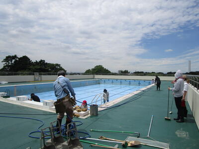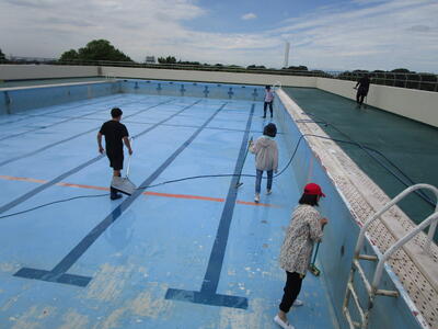6月4日(水) 久しぶりに青空が広がる絶好のプール清掃日和
