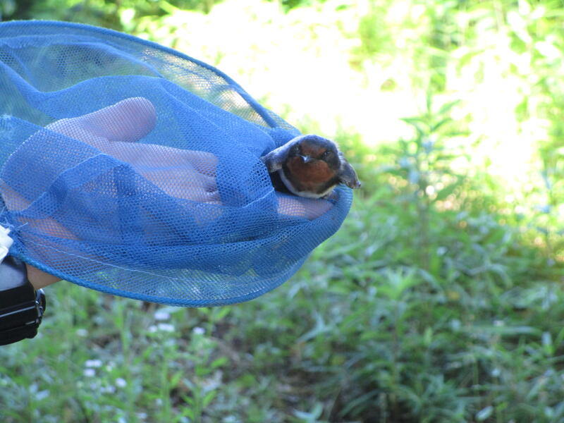 今朝、体育館の屋根裏にツバメが迷い込んでしまい出られなくなっていたところ、教頭先生が捕まえて外に逃がしてあげました 巣を作るところを探していたのでしょうか。