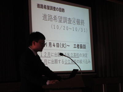 中学校卒業後の進路を決定する大事な時期です。3年生は真剣に説明を聞いていました。保護者の皆様、ご参加いただきありがとうございました。