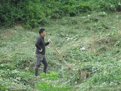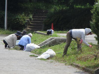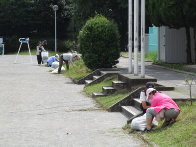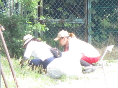6月14日(土)に体育祭を開催します。その前に、グラウンド周りの草刈りをと、保護者地域の方17名が集まって、作業をしてくださいました