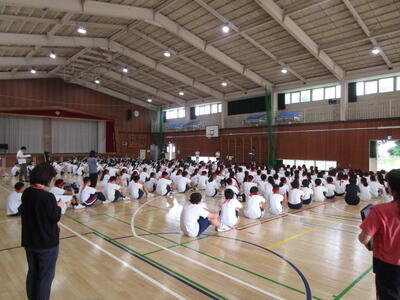 6月10日(火)今日は雨が降り続きました残念ながらグラウンドでの練習はできず、屋内での活動でしたが、練習計画を朝の会でリーダーが分かりやすく伝えて、今日も元気に練習に取り組む西中生でした