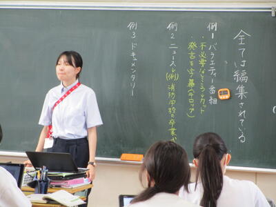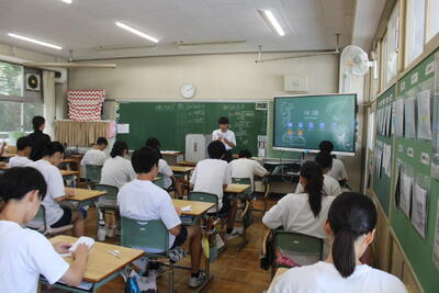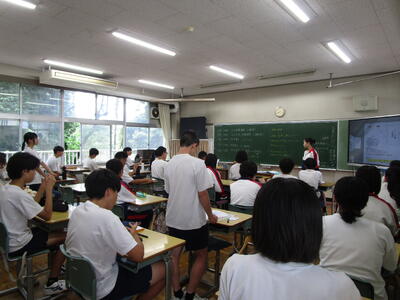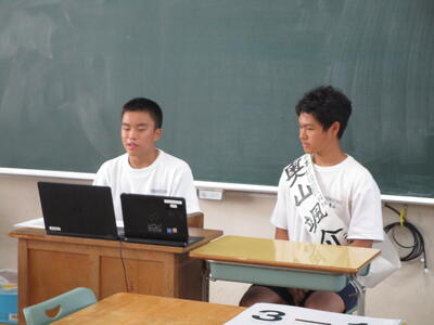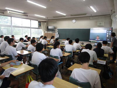 この大会はYouTubeでライブ配信されており、校内では、3年生全員が各教室で発表を見守り、終了後は大きな拍手が沸き起こりました
