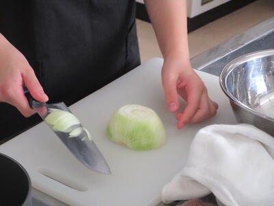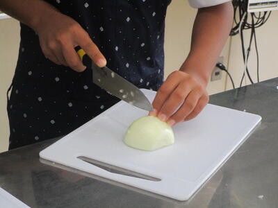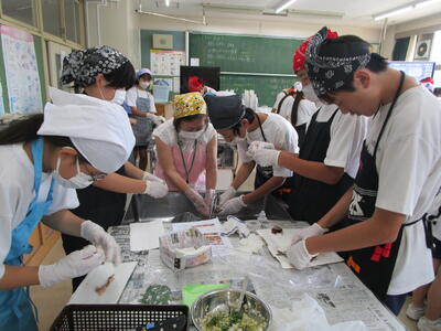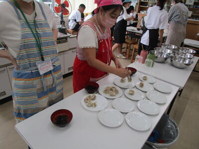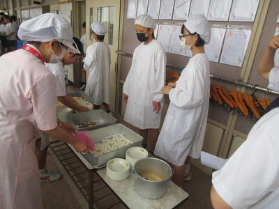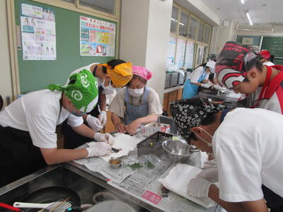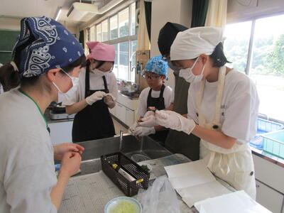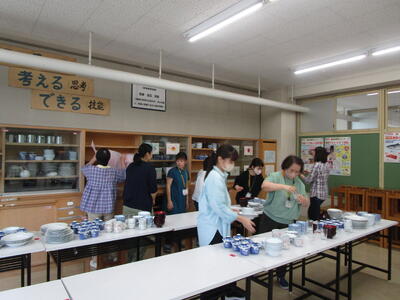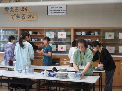 調理室整備は、毎年ボランティアの皆さんにお世話になっています。食器や調理器具の在庫確認、調理棚や調理台の清掃などを行っていただき、おかげさまでスムーズに調理実習ができます
