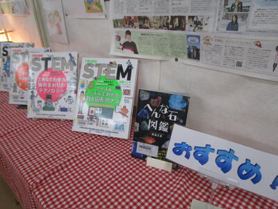 図書館司書の先生が、おすすめ本、新着本を取りそろえてくださっていますよ