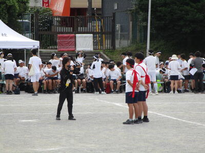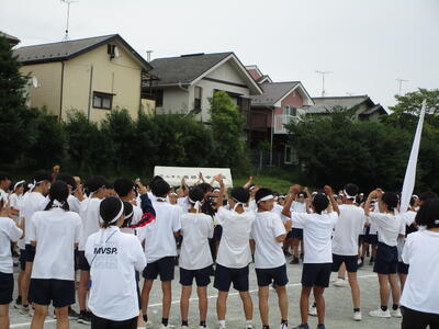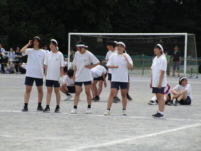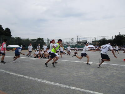 これは、18日(土)に行われる東葛駅伝大会の選手選考を兼ねています。今まで練習を重ねてきた駅伝部を応援しようと、全校生徒がグラウンドに集まりました