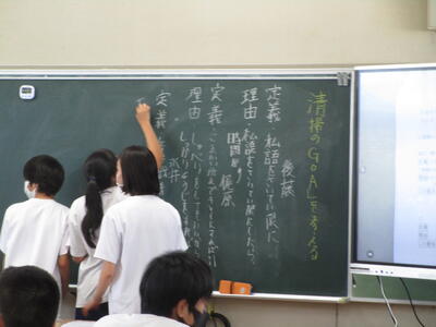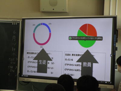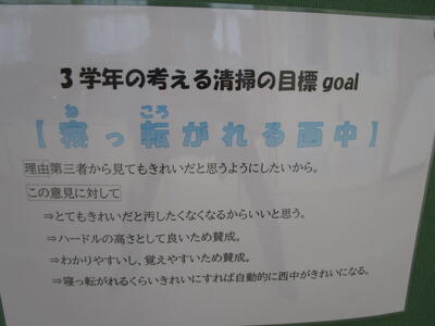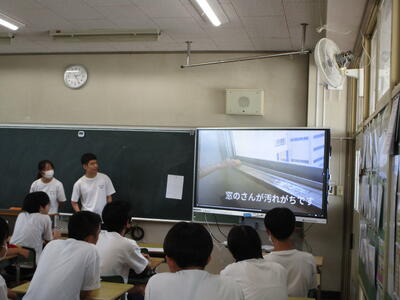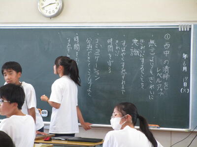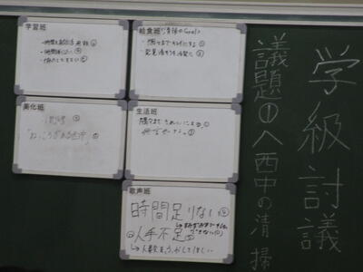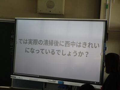 作成した動画資料が素晴らしく、どのクラスも討議が深まっていましたこのあと、学年討議、全校討議と進み、今年の西中の清掃活動がグレードアップされます