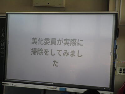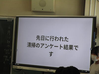 今日は、美化委員会がアンケート結果や実際の清掃状況をまとめた動画を全クラスで視聴し、それを受けて清掃の在り方について学級討議をしました