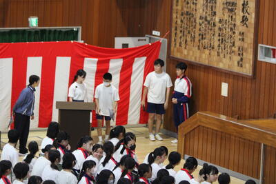 また、後期の委員会組織になり、保健委員会は「歯磨き週間」の取組を実施中22日(水)の給食時には、歯磨き取組の各学年1位の表彰がありました