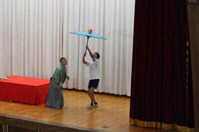 毎年指導していただいており、和太鼓のオリジナル曲も作っていただいています。今日は、その曲も含め文化祭「潮祭」で演奏する曲を稽古していただきました。練習の成果は、10/31(金)に行われる「潮祭」で披露します。お楽しみに