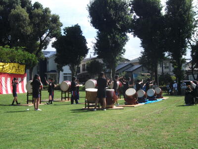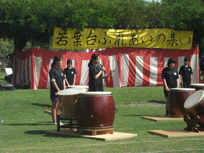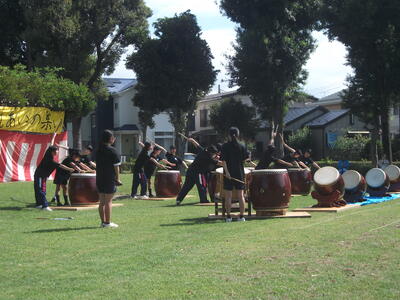11/2(日) こんぴら公園で、西初石1.2丁目自治会「こんぴら祭り」が行われ、総合文化部が和太鼓演奏を披露しました