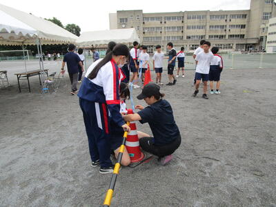 午前中は雨が降っていたので、体育の授業は体育館でバトンパス練習を行っていました体育祭に向けて、着々と練習しています