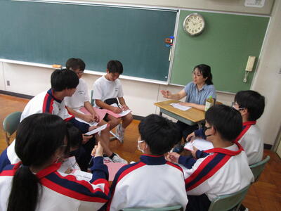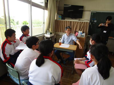 生徒たちは、事前に質問したいことを用意し、グループに分かれてインタビュー形式でスタートしました。話はどんどん盛り上がり、話題は多岐に渡りました