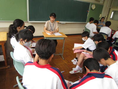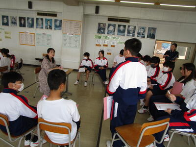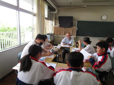 1年生は総合的な学習の時間を活用して、「地域学習から地域貢献活動へ」という学習に取り組んでいます。その一環で、本日は西初石中学区にお住まいの方々16名にお越しいただき、初石地区についてのさまざまなお話しを伺いました