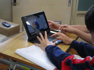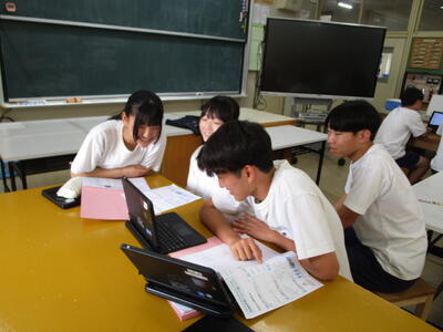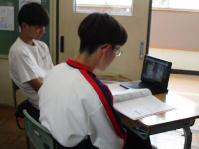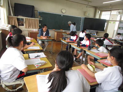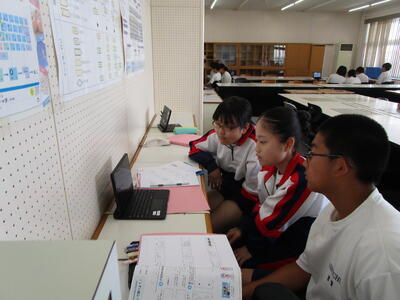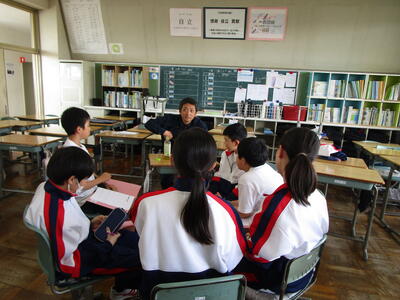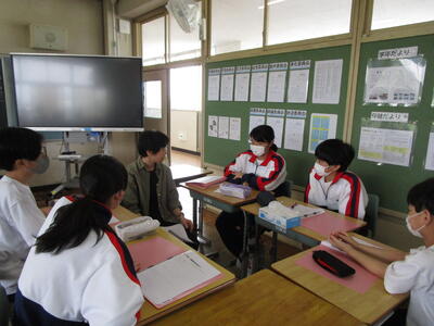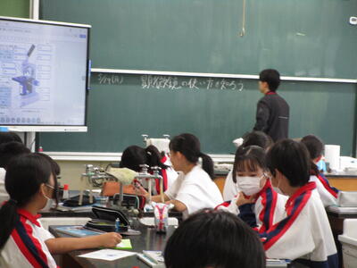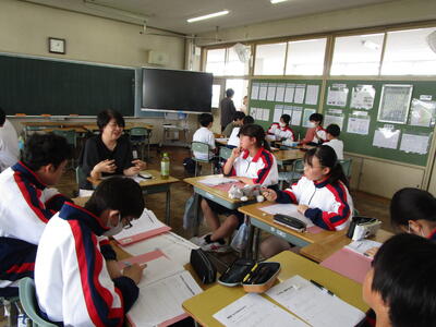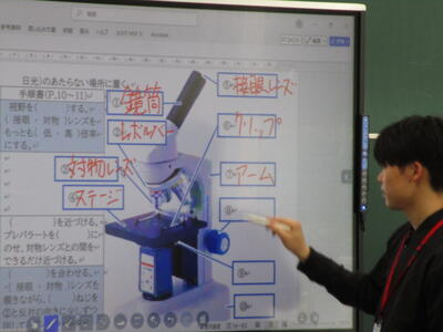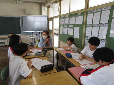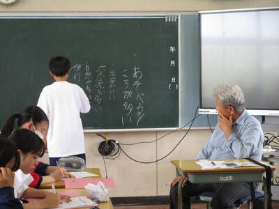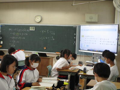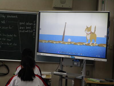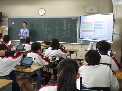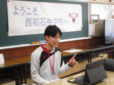 授業は電子黒板を活用しながら丁寧に優しく指導していました。西中卒業生の今後の活躍に期待です