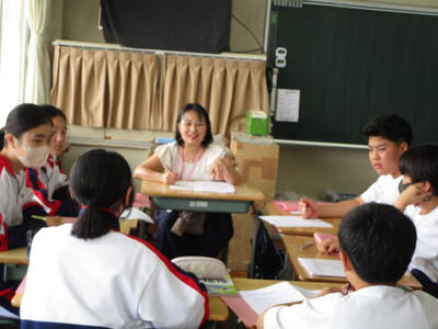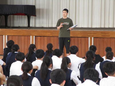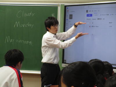 授業は1年生を担当し、部活動はバドミントン部に参加しています。全校生徒への自己紹介は、13日の給食の時間にTeamsで行いました