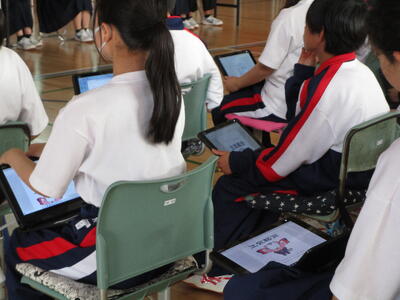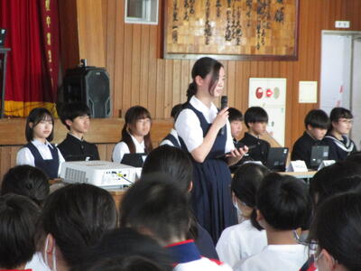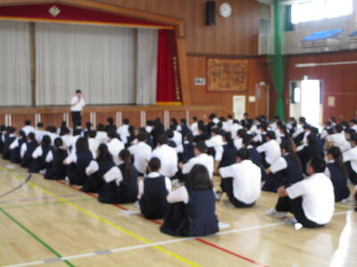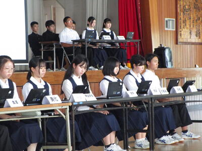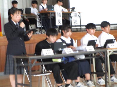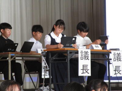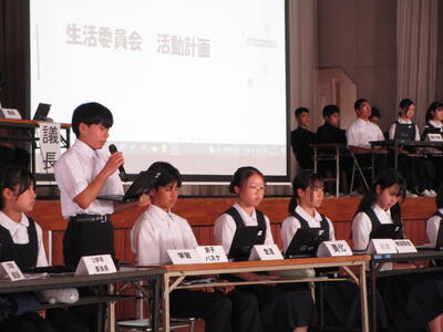 5校時は、全校が集まって今年度の生徒会活動を決定する生徒総会を行いました
