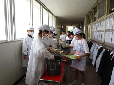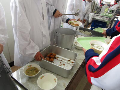いつも給食調理場から美味しそうないい匂いが漂ってきて、給食時間が楽しみな西中です