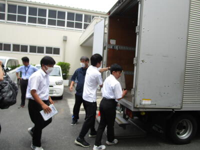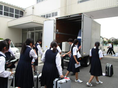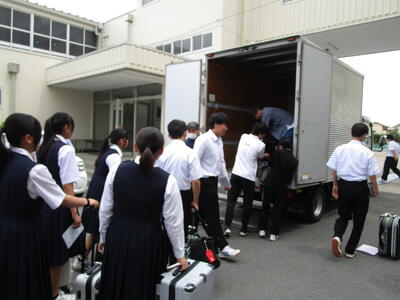 今日は、前日の荷物積み込みを行いました。大きな荷物は一足先に奈良のホテルへ出発です