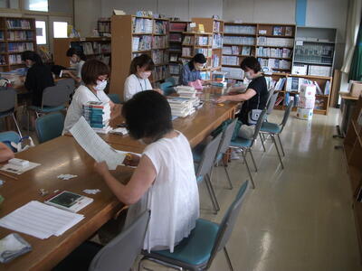 本日は、朝早くから図書ボランティアの方々にご来校いただき、図書室の本の整備をしていただきました。子ども達が借りた本を迷わずに正しい場所に返却できるよう、目印のシールを貼っていただきました。大変細かな作業でしたが、皆さんで分担して作業を進めていただきました。ありがとうございました。