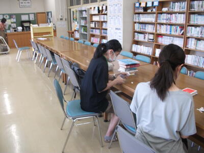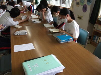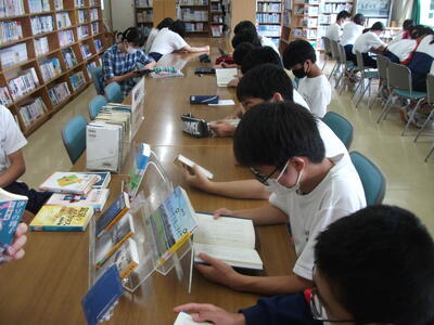 3年生の国語の授業は図書室で読書をしていました。話を聞くと、夏休みの読書感想文を書くための本を選んでいるとのことでした。しーんとした雰囲気の中、集中して読書をしている3年生、良い本は見つかったでしょうか。受験勉強で忙しい夏休みになることと思いますが、時間を見つけ読書に親しんでほしいと思います。