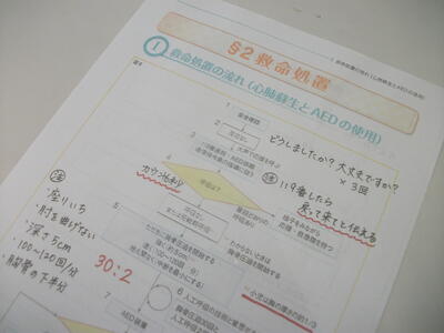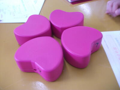 また、本日の5~6時間目には、講師として、流山市青少年相談員・民生委員児童委員・補導員の秋山さんとNPO防災対策サポートの岩佐さんに来校していただき、3年生の技術の授業で、防災授業をしていただきました。小さいハートの形の道具を使って、心臓マッサージの練習をしたり、AEDの使い方について教えていただいたりしました。もし万が一、AEDを使わなければならない場面に遭遇した場合には、本日の授業で学んだことを生かしてほしいと思います。