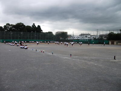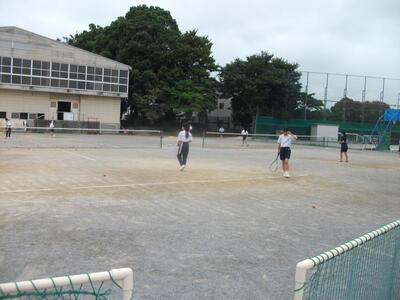 今週末に葛北大会を控えた各部活動は、朝から熱心に活動しています。先週の大会の個人戦で第3位になった、女子ソフトテニス部の原羽安音さん、長岡優依さんペアは、1番に校庭に出て、すぐに練習をしていました。陸上部の子ども達も、広い校庭のトラックを、汗をかきながら走っていました。暑い日が続きますが、体調管理に気を付けながら練習をし、悔いの残らない大会にしてほしいと思います。