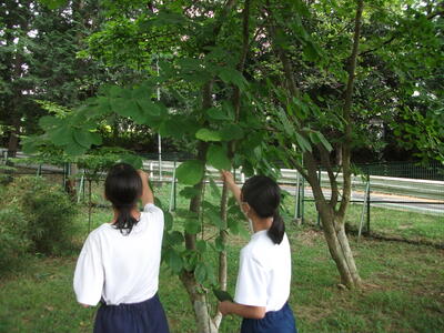 本日の朝、体育館の前にキラキラときれいに輝く「ヤマトタマムシ」がいました。生きていたので、理科の加藤英明先生が捕獲し、1年生の理科の教材として使っていました。夏休み中には、1年4組の窓にぶつかったであろう、幼い「おおたか」がベランダに倒れており、見つけた1年4組担任の金子大地先生と袴田先生が動物病院まで運んでくれたということもありました。豊かな自然に囲まれた中学校であることを再認識したできごとでした。