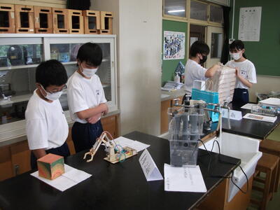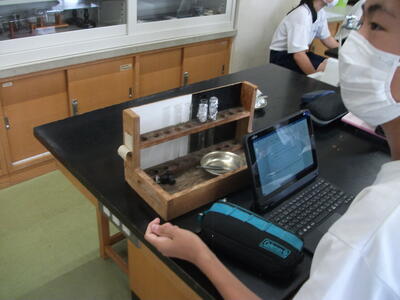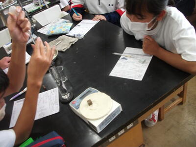 2年生は、引き続き理科室で壮大な実験をしていました。机の上には担当の袴田先生が準備した器具がたくさん置かれており、子ども達は昨日よりもさらに多くの器具を使いながら、実験を進めていました。自分のタブレットで写真を撮り、レポートにまとめ始めているグループもあり、子ども達の計画を立てる力やまとめる力の高さに感心しました。隣の教室では、1年生が理科の実験で、基本的な器具の使い方の学習をしており、学習したことの積み重ねが子ども達の力になっていることを実感しました。