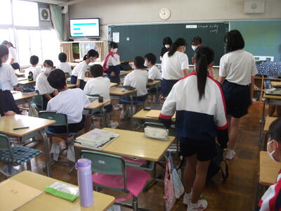 最後に終業式です。校長先生の話の中で、たくさんの写真を使い1学期の各行事を子ども達と振り返りました。宿泊行事も含め、本当に多くの行事ができた1学期だったなあと思い、感慨深かったです。2学期には、体育祭や潮祭等、まだまだ行事が目白押しです。みんなで良いたくさんの良い思い出が残る2学期にしていきたいと思いました。