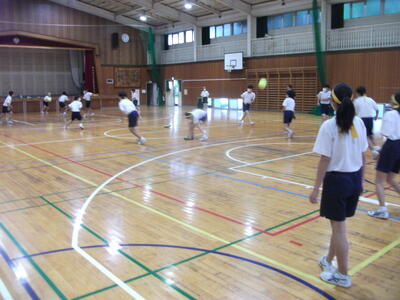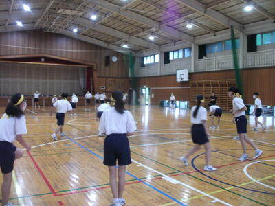 3年生は体育の授業で、4つのボールを使ったドッジボールです。たくさんあるボールを力いっぱい投げたり、どこから飛んでくるかわからないボールをよけたりと広い体育館全面を使って、思い切り体を動かしていました。運動部も引退を迎えると、体を動かす機会も少なくなることと思います。2学期以降も、週に3回の体育の授業でしっかりと体を動かして体力の向上につなげてほしいと思います。