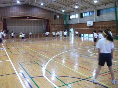 放課後のバレー部です。今週末に葛北大会を控えておりますが、3年生の引退セレモニーを行っていました。涙々のセレモニーだったようで、笑顔の中にも子ども達の泣きはらした目が印象的でした。それだけ、3年生の4人の部員が、後輩に慕われており、たくさんの後輩の部員も3年生を頼りにしていたということがとても強く伝わってきました。土曜日の大会では、3年生は全力で後輩を引っ張り、悔いのない試合をしてほしいと思います。