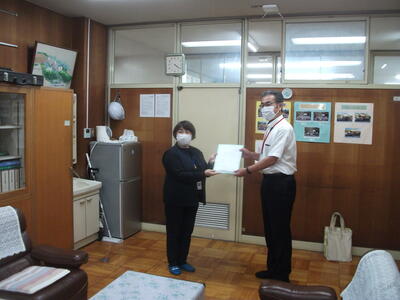 また、本校のベルマーク回収活動が評価され、流山市社会福祉協議会の方からベルマークの寄付をしていただきました。例年、生徒達が集めたベルマークを使って子ども達のために役立つものと交換していますが、今年は寄付していただいたベルマークも有効に使っていきたいと思います。ありがとうございました。