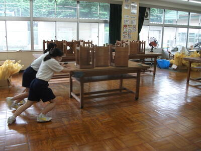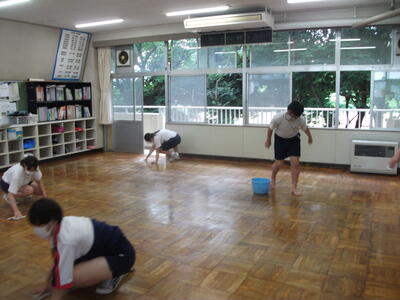 また、4時間の授業を終え、1学期最後の給食を食べた後には、50分間の大掃除がありました。1学期間お世話になった教室をみんなで協力してきれいにしました。すべての机やいすを廊下に出したり、机を後ろに運んだりして、隅々まで掃除をしていました。50分が終わるころには、広い教室の床はワックスでぴかぴかになっていました。感謝の気持ちを込め、一生懸命掃除をする姿が立派でした。