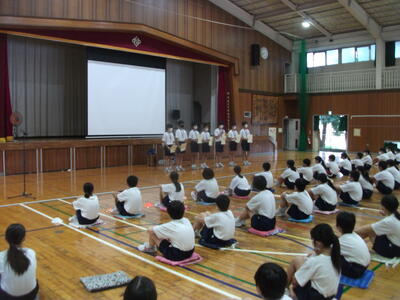 また、校長先生から夏休みは、42日、1008時間、60480分の時間があり、有意義に使ってほしいこと、夏休みにおいて、学習や生活の具体的な目標を立ててほしいこと、のお話もありました。