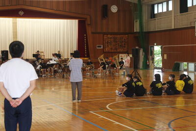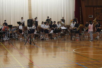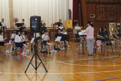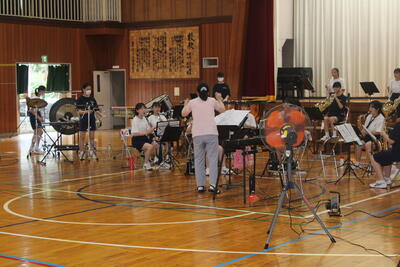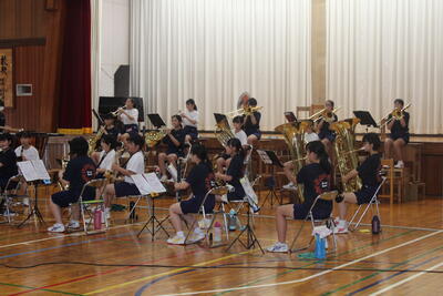 夏休み2日目、部活動で登校する子ども達も多く、引き続き活気溢れる学校です。吹奏楽部は来週28日(木)に千葉県吹奏楽コンクール出演を控えており、練習にも熱が入っています。本日は、体育館を使用して練習していましたが、最後には、バレー部の子ども達と先生方を観客にして、本番さながらの演奏会をしました。演奏終了後には先生方からたくさんのお褒めの言葉をいただきました。明日以降の練習で最終調整をし、本番ではさらに素敵な演奏ができることを期待しています。がんばってください!