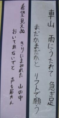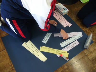 2年生の国語の授業では、林間学園の思い出を短歌に表していました。今日は清書だったようで、筆ペンを使って上手な字を書いていました。また、みんなの作品を大きな一枚の紙に貼り、きれいにまとめていました。中には、車山を下山するときの様子を表現している作品もあり、壮絶な状況が伝わってきました。