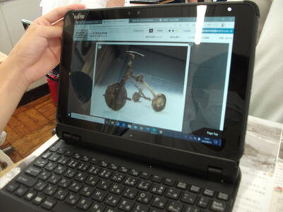 隣の学級は英語の授業です。絶滅危惧種に関する英語の文を読み、タブレットを使って絶滅が心配される動植物について調べていました。パンダやゾウ、サイなど動物園で見られる身近な動物も絶滅危惧種に指定されていることを知り、びっくりしていました。