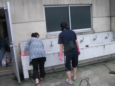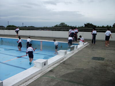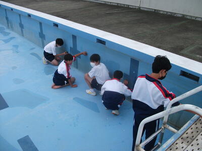 さらに、放課後には貢献隊によるプール掃除もありました。午前中、ボランティアの方々がきれいにしてくださったプールを見て驚いている生徒もいました。たくさんの子ども達が自主的にプール掃除に集まり、一生懸命作業をしていて立派だと思いました。