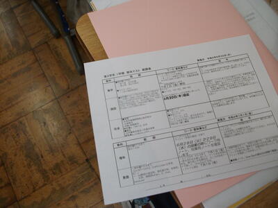 2年生は期末テストの範囲が発表されました。それぞれの子ども達が、順位や得点に関する目標を立て、教科ごと、日にちごとの計画を立てていました。みんな真剣に、じっくりと考えながらプリントと向き合っている姿が印象的でした。期末テストまで、2週間となりました。計画どおりに学習を進め、準備万端の状態でテストに臨み、それぞれの目標を達成してほしいと思います。